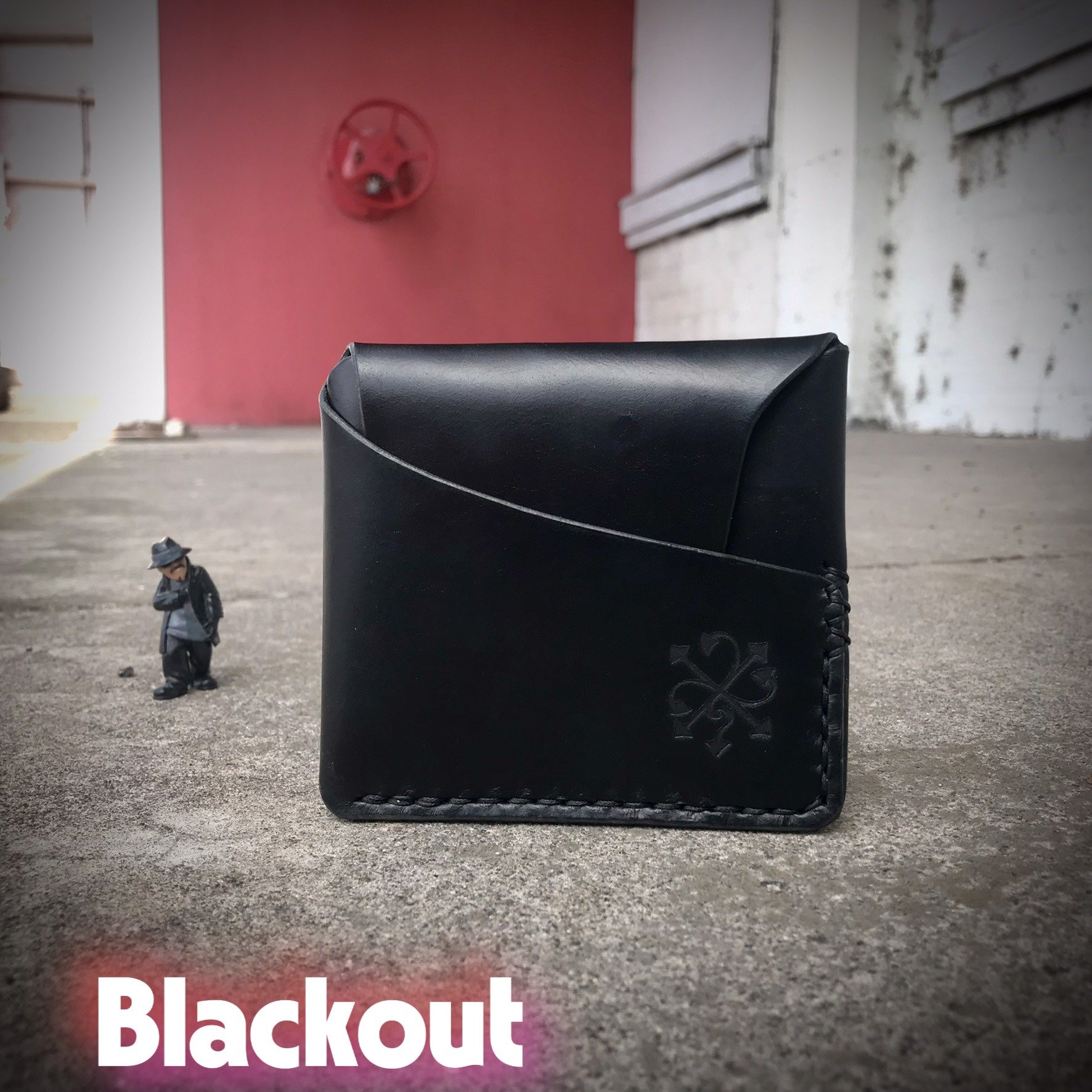 Blackout: 4/5 oz Horween Chromexcel. Slick all black, slightly waxy feel. Flexible and will stretch to fit stuff easily.